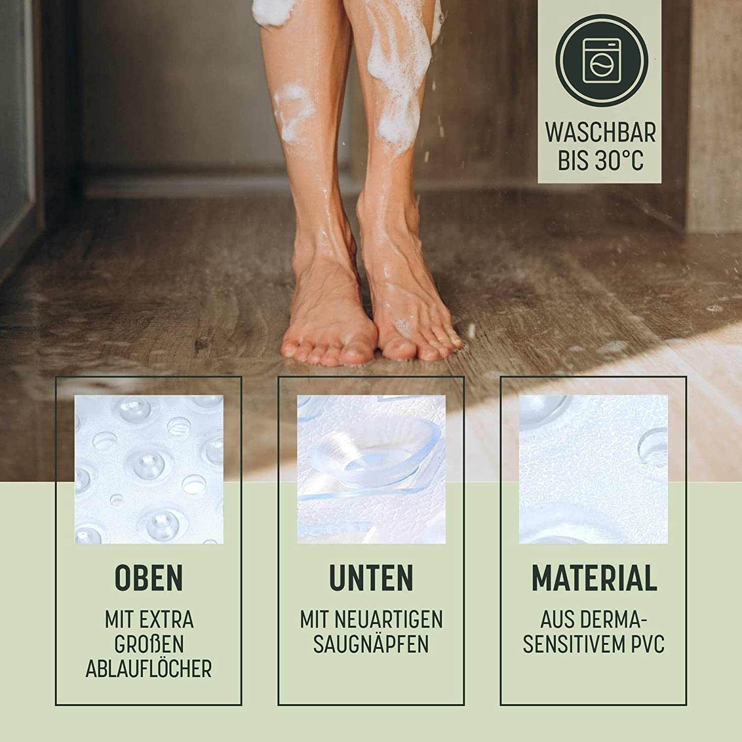 RUTSCHFEST & STANDSICHER – Die Anti Rutsch Oberfläche unserer Duschmatte bietet absolut sicheren Halt und das auch wenn Shampoo und Seife verwendet wird: Machen Sie sich daher keine Sorgen mehr für einen sicheren Stand in der Dusche.