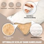 Seine Beliebtheit verdankt das Kamelhaar besonderen Eigenschaften. Das handverlesene Haar schafft ein atmungsaktives, geruchsneutrales und pflegeleichtes Klima – und das in bester Premium-Qualität. Kamele verlieren ihr Haar, sie werden nicht geschoren. Ein Kissen aus Kamelhaar ist sehr anschmiegsam und zeichnet sich durch außerordentliche Fähigkeiten in der Feuchtigkeitsaufnahme und -abgabe aus. Damit schafft es ein hervorragendes Schlafklima und sorgt für optimale Bedingungen in der Nacht. Die gekräuselte Struktur verursacht Luftpolster, die wiederum für die Feuchtigkeitsregulierung verantwortlich sind – perfekt für einen traumhaft gesunden Schlaf.
