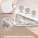 Das Inlett dieser Decke besteht außerdem aus reiner Bio Baumwolle aus streng kontrolliertem Anbau aus Deutschland. Außerdem gelten Lyocell Materialien als äußerst reißfest, strapazierfähig und langlebig. Bei richtiger Pflege haben Sie lange Freude an der Decke. Sie sollte bei maximal 60 Grad im Schonwaschgang gereinigt und anschließend an der Luft auf der Leine getrocknet werden, um dauerhaft ihre Wirkung zu entfalten und für ein trockenes Schlafklima zu sorgen. Wichtig: bitte wählen Sie die niedrigste Umdrehungszahl beim Waschprogramm und verzichten Sie auf den Schleudergang.