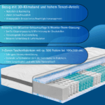 Der hochwertige 7-Zonen Taschenfederkern mit ca. 500 Federn (bei einer Liegefläche von 100×200 cm) bildet das