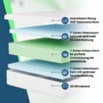 - Soft-Kaltschaum-Auflage (RG 60): Beidseitig aufgebracht für optimale Klimatisierung und Luftzirkulation.
