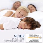 PFLEGELEICHT – Die Bettauflage macht Ihnen den Alltag einfacher. Sie lässt sich bei bis zu 60°C in der Maschine waschen und bei niedrigen Temperaturen im Trockner trocknen: ideal für Kinder, Baby, Allergiker, Familien, Eltern, Haustiere, Eltern, Bettnässer und für die kleinen Missgeschicke im Alltag