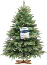künstlicher Weihnachtsbaum Nordmanntanne mit handgefertigtem Ständer aus Echtholz