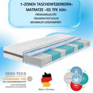 - Ca. 500 Federn (bei 100×200 cm) – punktelastisch und atmungsaktiv