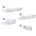 Leicht zu transportieren: Das Kissen lässt sich dank des mitgelieferten Aufrolltuchs leicht einrollen und bequem transportieren.